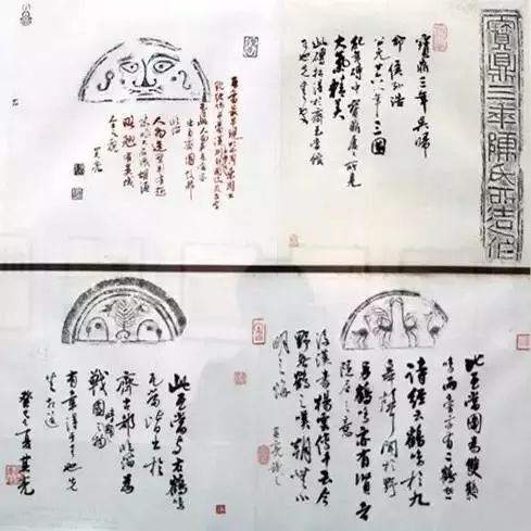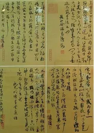 形式的组合,可以使不大的斗方具有小中见大、丰富多样的风采。可以是平均分布的直接组合,也可以是渐变的组合、交错的组合、关联的组合、多种幅式的组合,还可以在书法、印刷品、篆刻、拓片、绘画等门类间或在纸、绢、木、竹、石等相关材质间进行……这种综合格式的创作,须有明确的主题。例:
