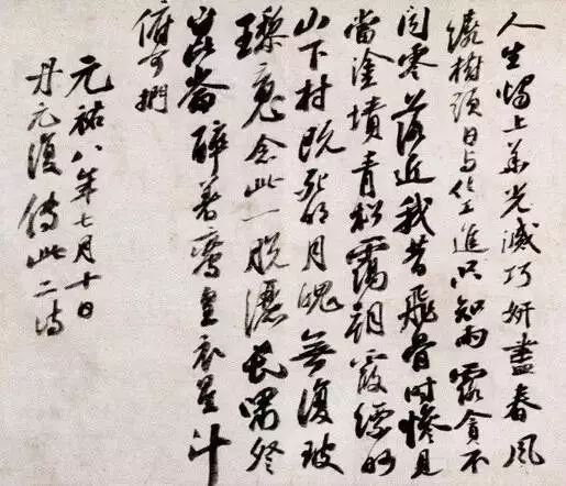 这是由平常日记、信札、文稿等的书写演变而成的一种形式,作品布局随文字内容的停顿、转换划分成若干个部分,空间的块面形成自然,中间的余白即为行间的呼吸。若有涂改,行间的松紧要协调,使之成为一种“无意”的点缀或“意外”的变化。