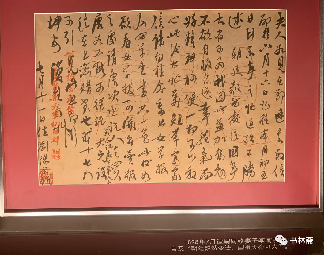 这里展出的,就是谭嗣同给其妻子李闰的信。