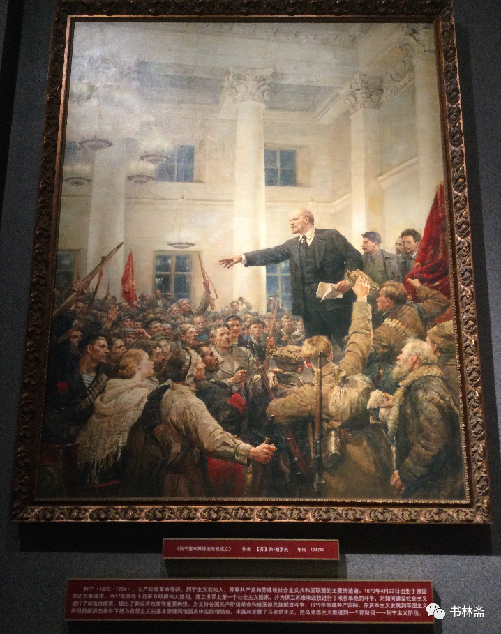 展出的文物是弗·谢罗夫在1947年创作的《列宁宣布苏维埃政权成立》。