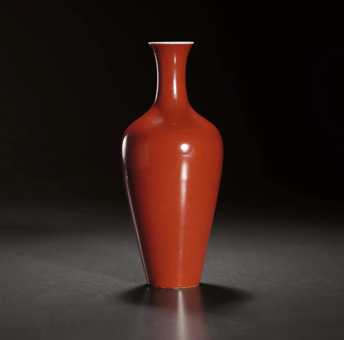 这种绿色苔点本是烧造技术上的缺陷,但在浑然一体的淡红中,掺杂点点绿斑,更显得优雅清淡,柔和悦目,给人美感,引人遐思。因此有“绿如春水初生日,红似朝霞欲上时”的美誉。