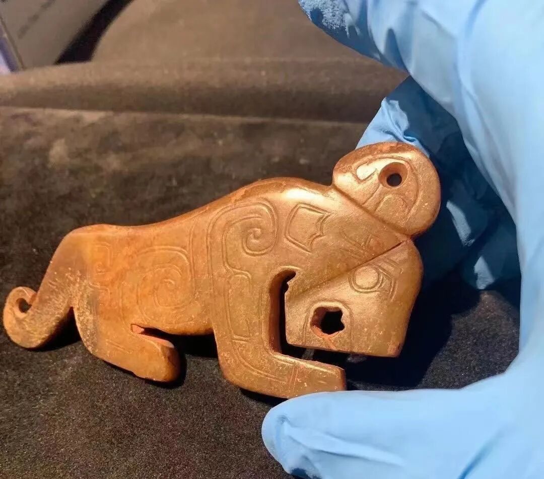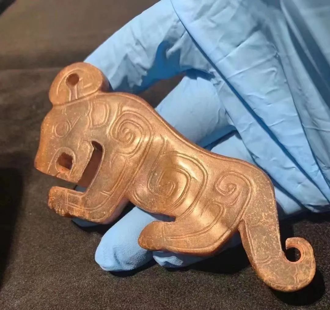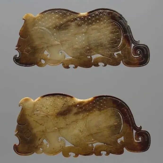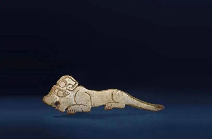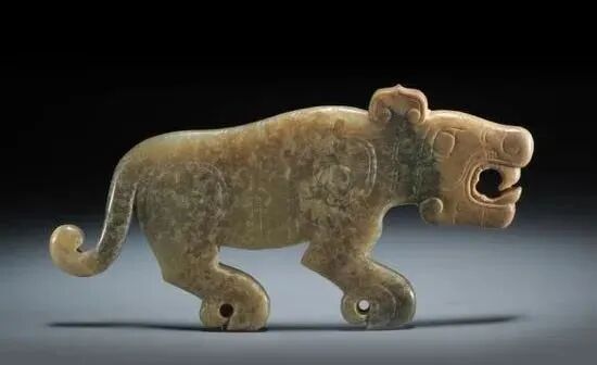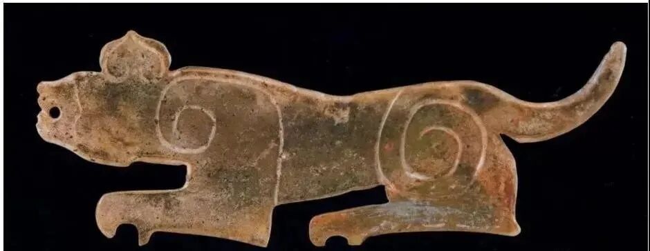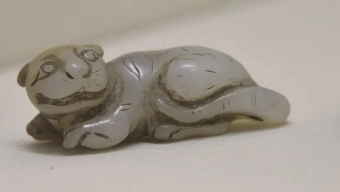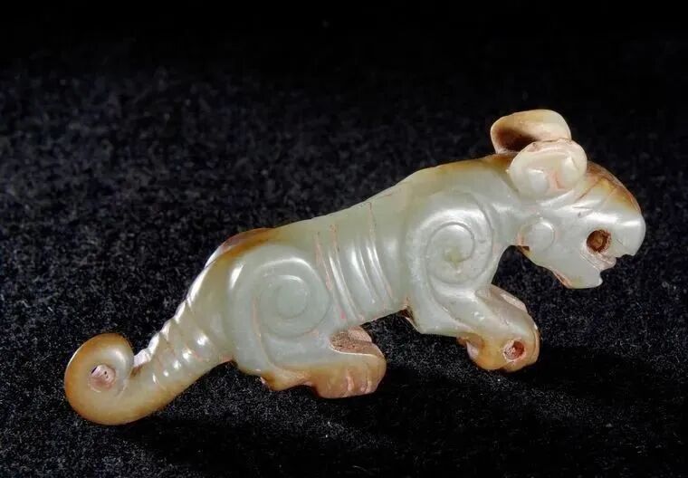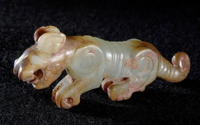 战国玉虎形饰,战国文物,现收藏于杭州博物馆。