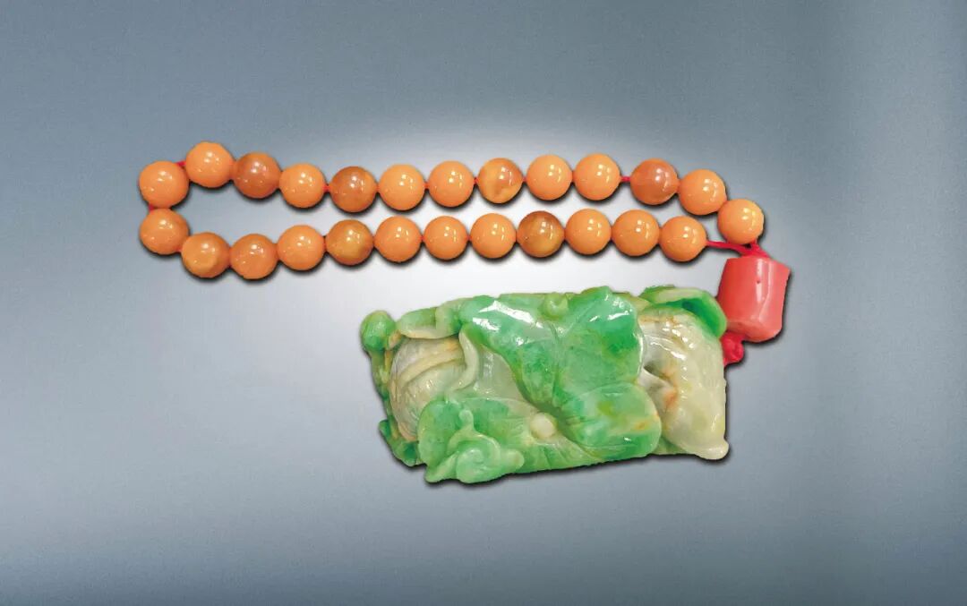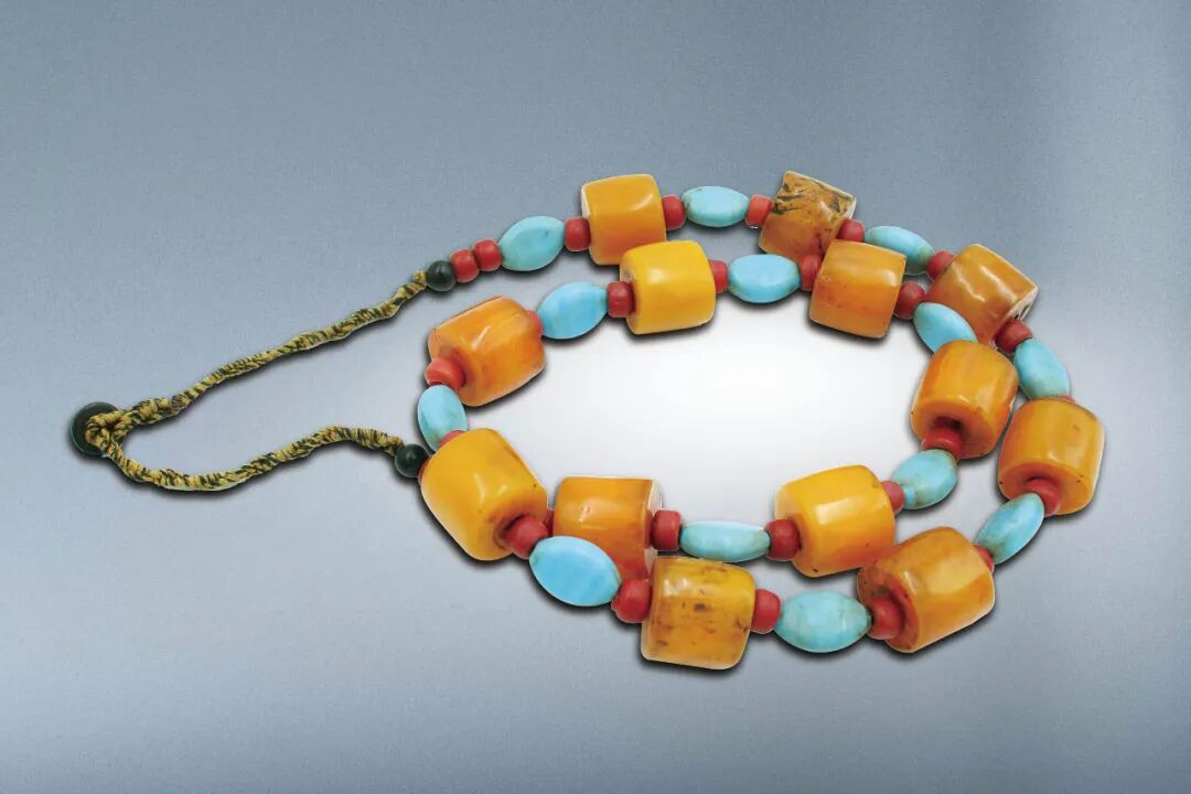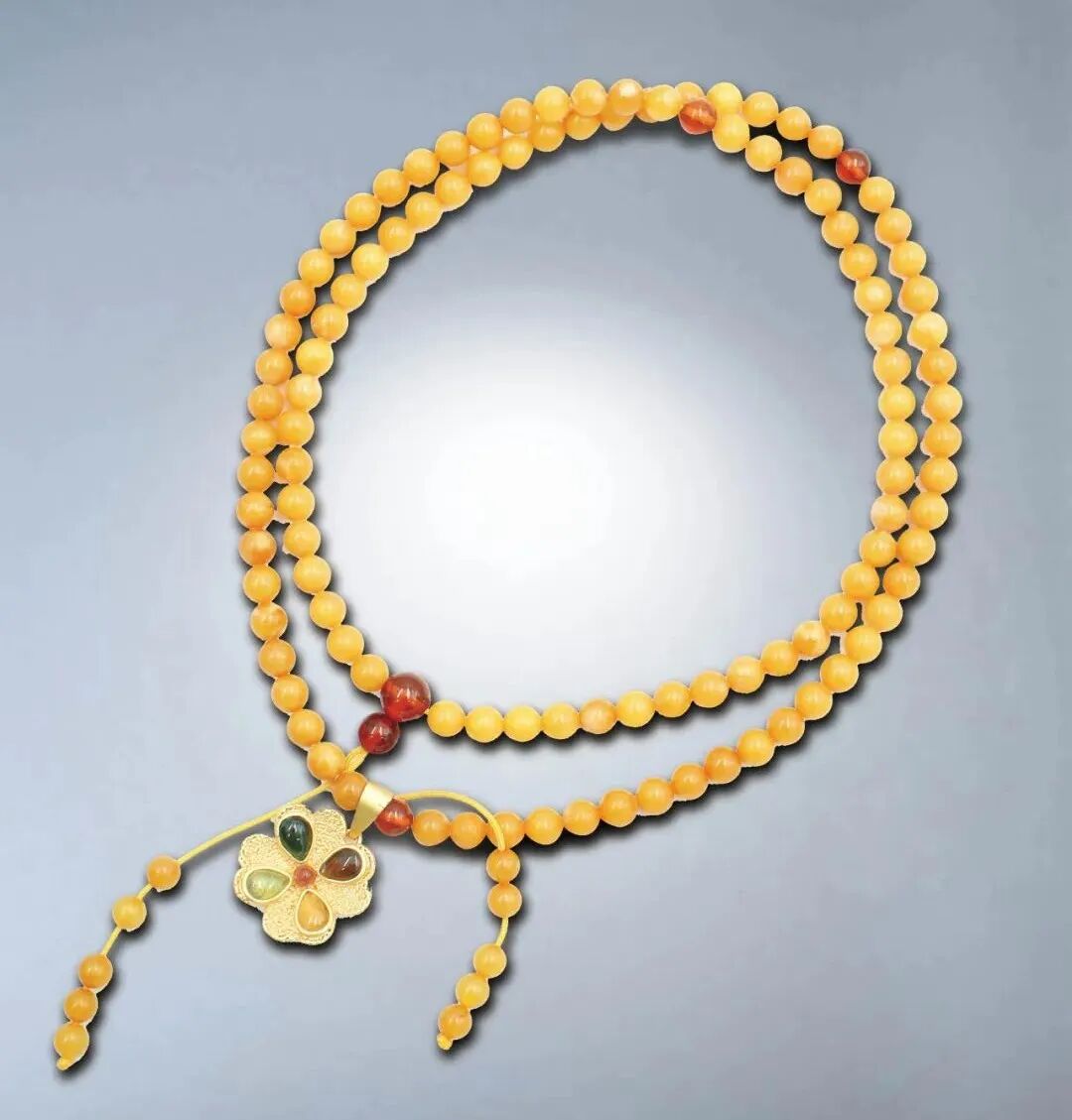 216 清 古蜜蠟松石珠鍊 蜜蠟珠13粒