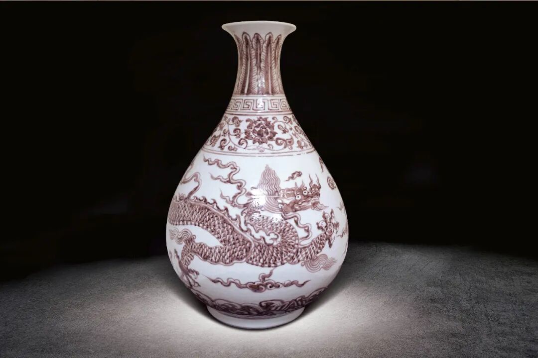 42 明 釉裡紅纏枝龍紋玉壺春瓶