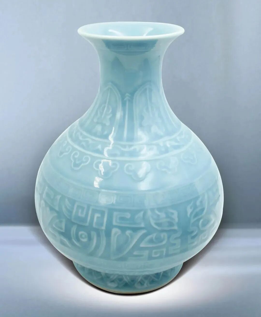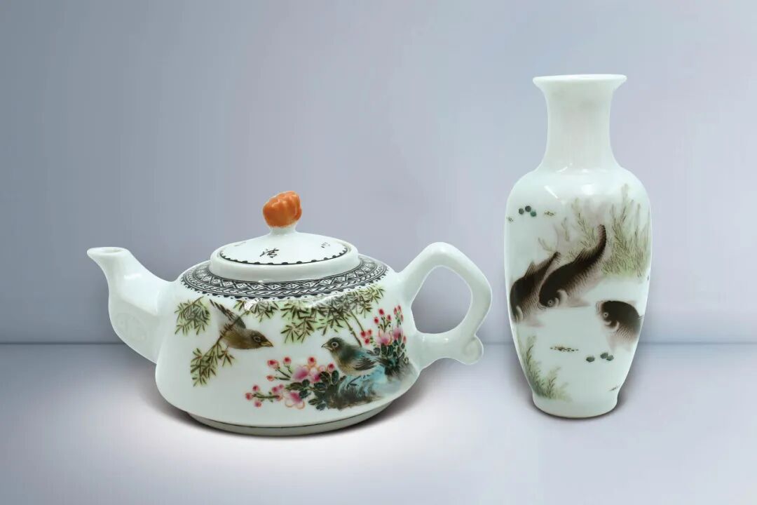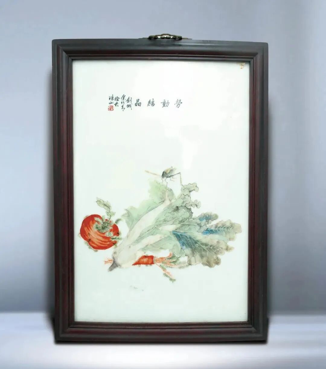 20 民國 汪禹粉彩魚藻紋瓶 花壺