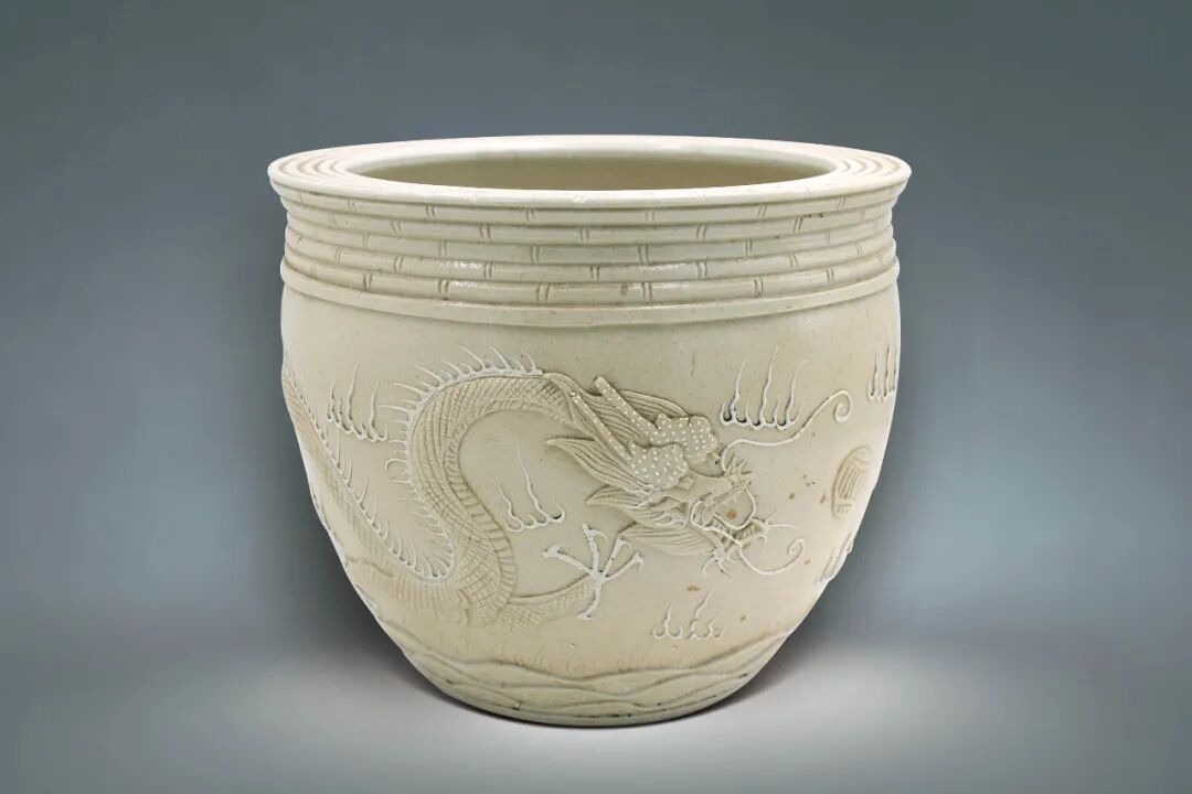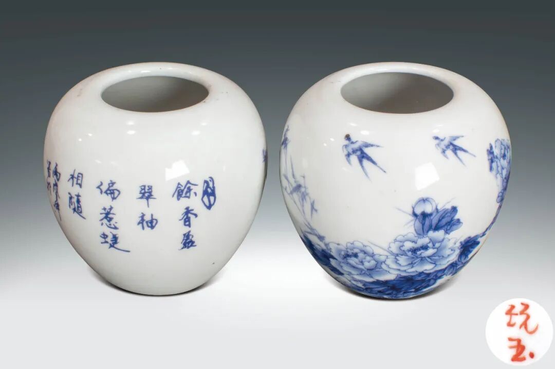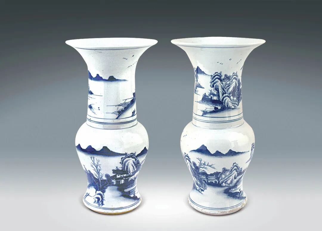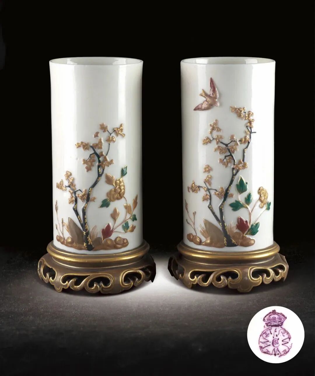 4 十九世紀 英國仿東方陶瓷花鳥紋筆筒一對