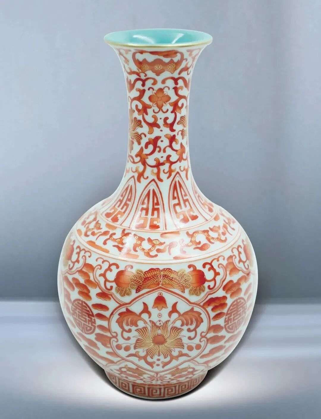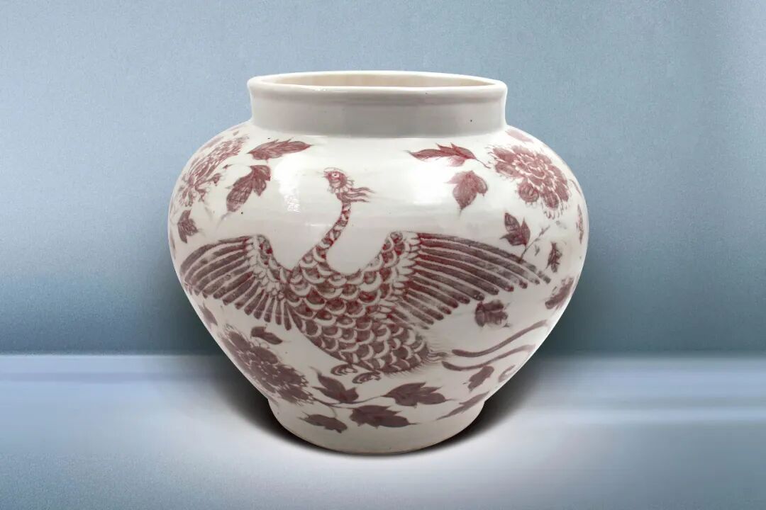 33 元 釉裏紅飛鳳牡丹紋大罐