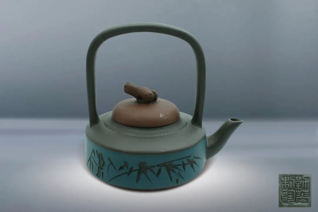 220 19世紀 日本南鶴楊製·乳釘紋鐵壺