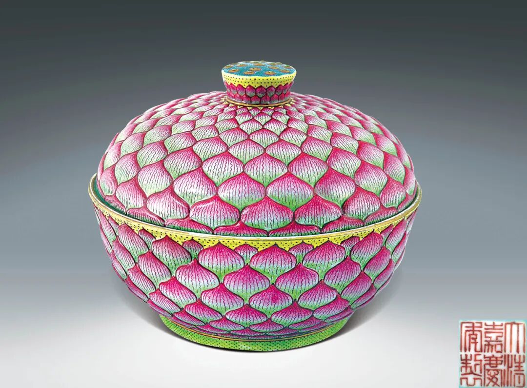 41 清嘉慶 粉彩蓮瓣紋蓋盒