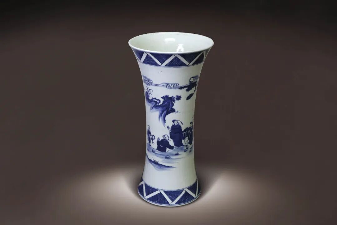 12 清乾隆窯 青花庭園紋瑞獸紋玉壺春瓶