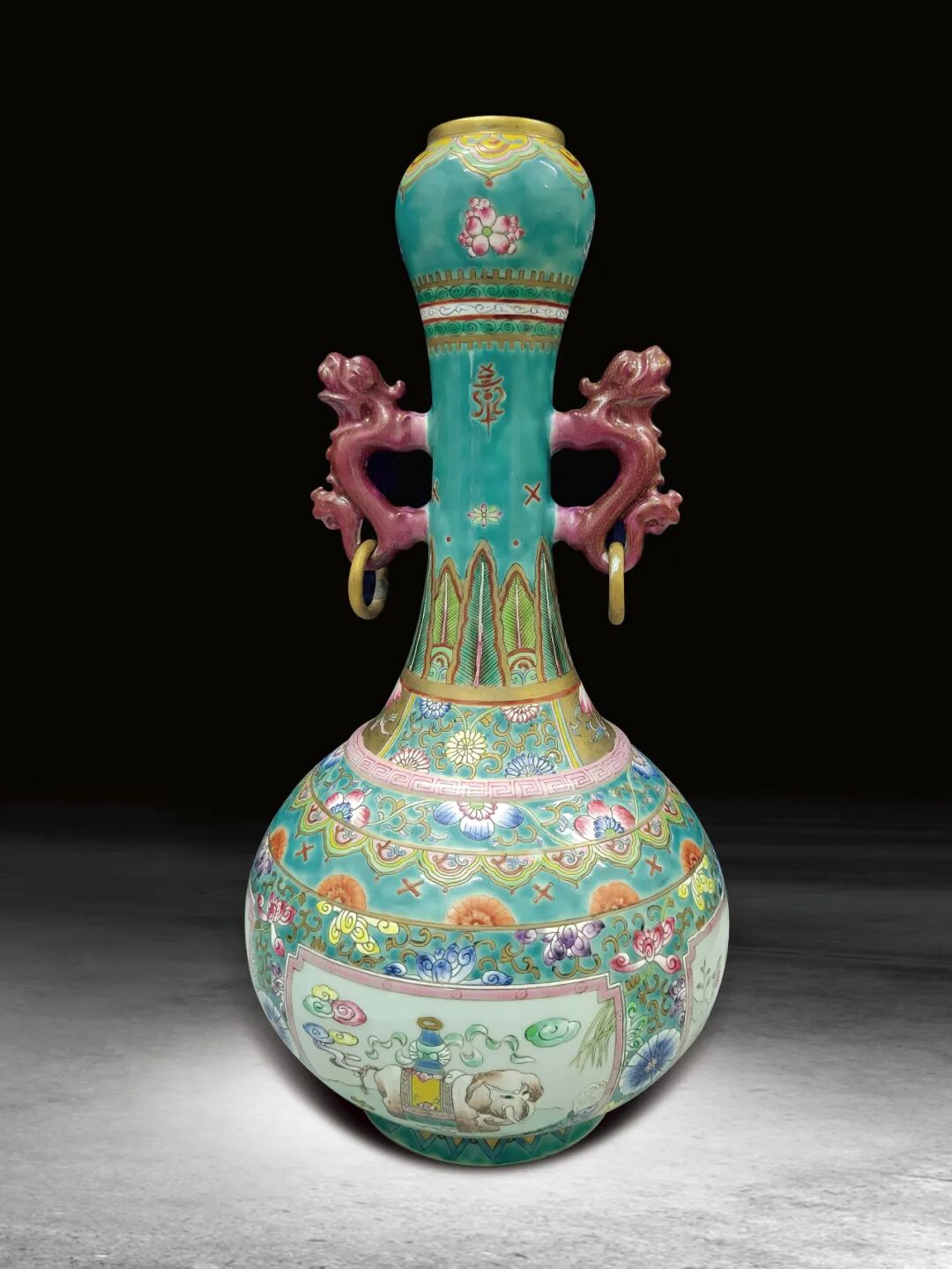 5 民國 粉彩雙耳瑞獸蒜頭瓶