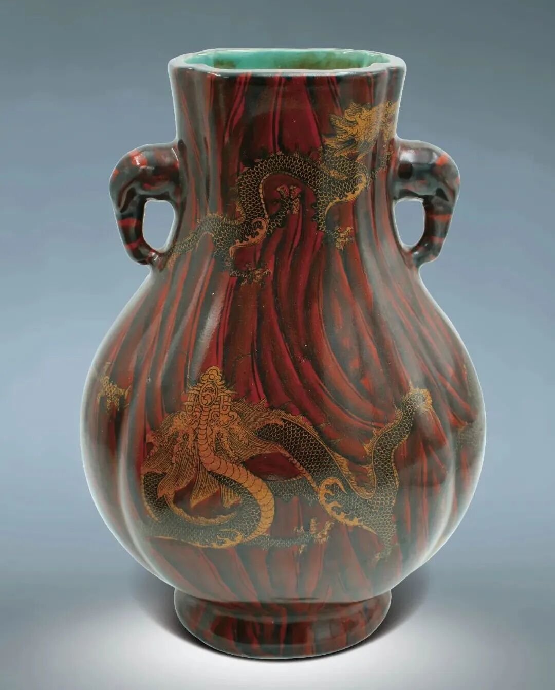 10 清雍正 木紋地描金龍紋雙耳瓶