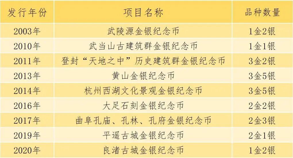 世界遗产纪系列金银纪念币是从2003年开始发行的,19年来陆续发行了9组。