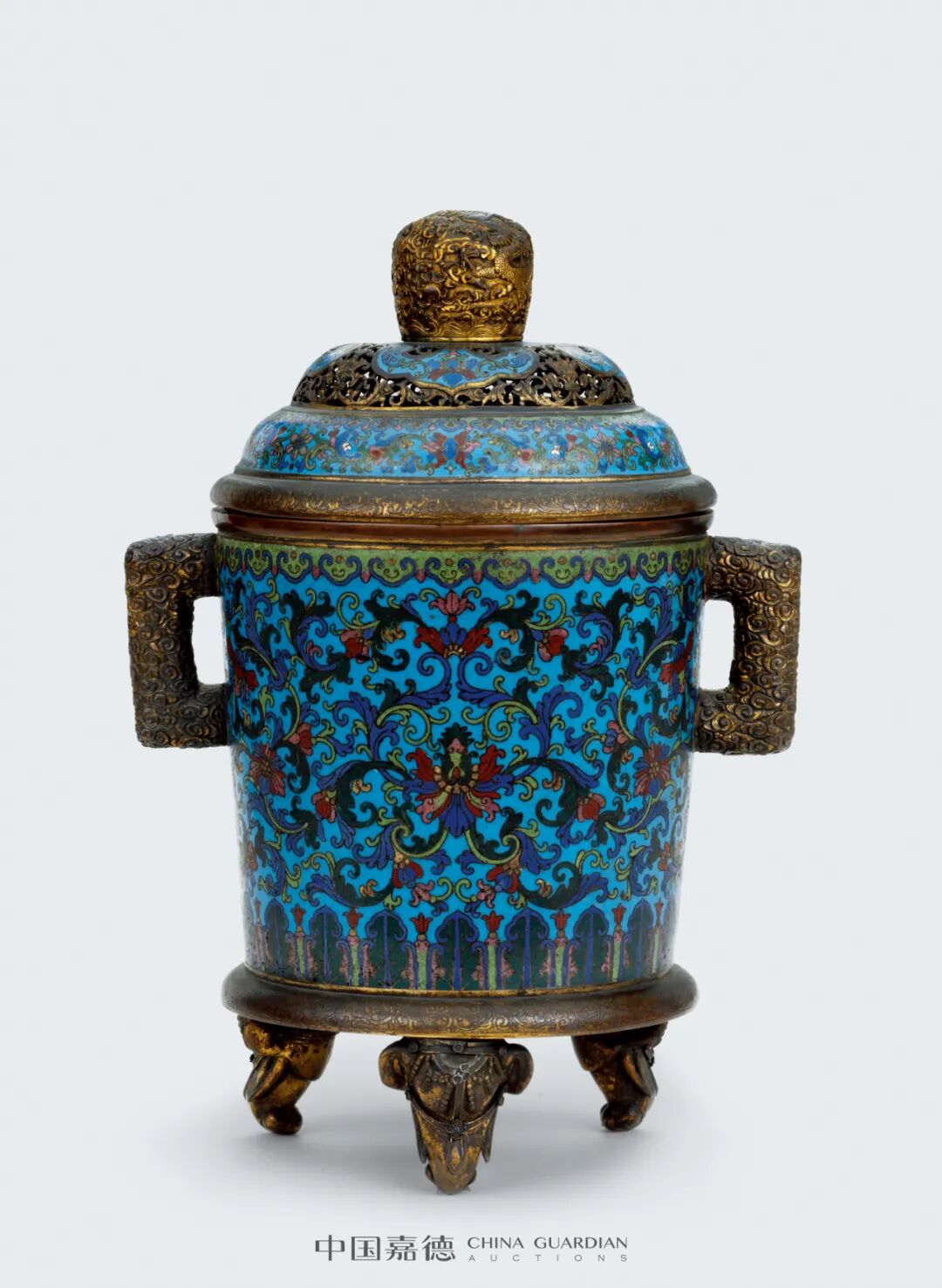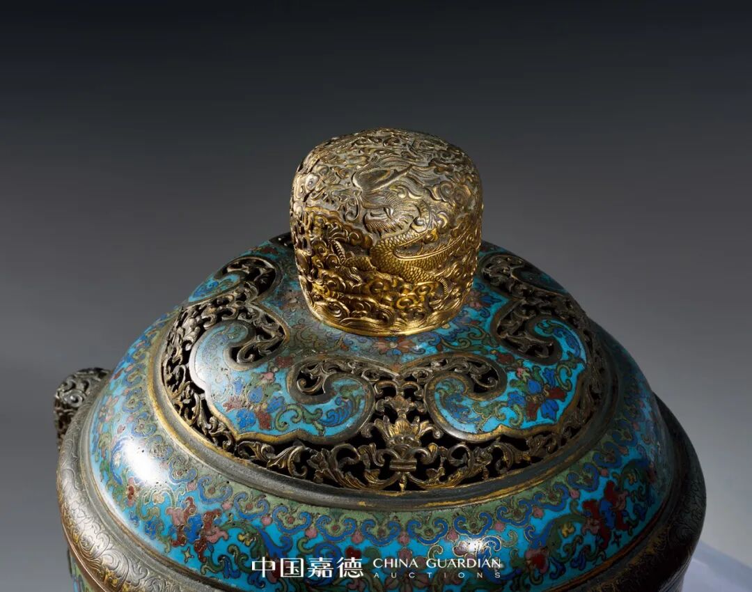 铜胎掐丝珐琅为釉铜结合的独特工艺,制造历史可追溯到元朝,经历明、清康熙、雍正各朝的技术发展,至乾隆年间已取得了显著的进步,制作是取金或铜为胎,上以金丝或铜丝掐出图案,填入各色珐琅后经焙烧、研磨、鎏金等多道工序而成,为宫廷重要之作。
