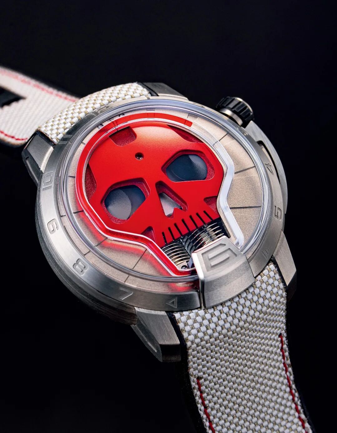 獨特趣緻,限量版鈦金屬機械腕錶,備逆跳液體小時及動力儲存顯示,「HYT Skull 48.8」,型號 S48-TT-35-GF-RA,限量生產 50 枚,年份約 2018,附原廠證書及錶盒