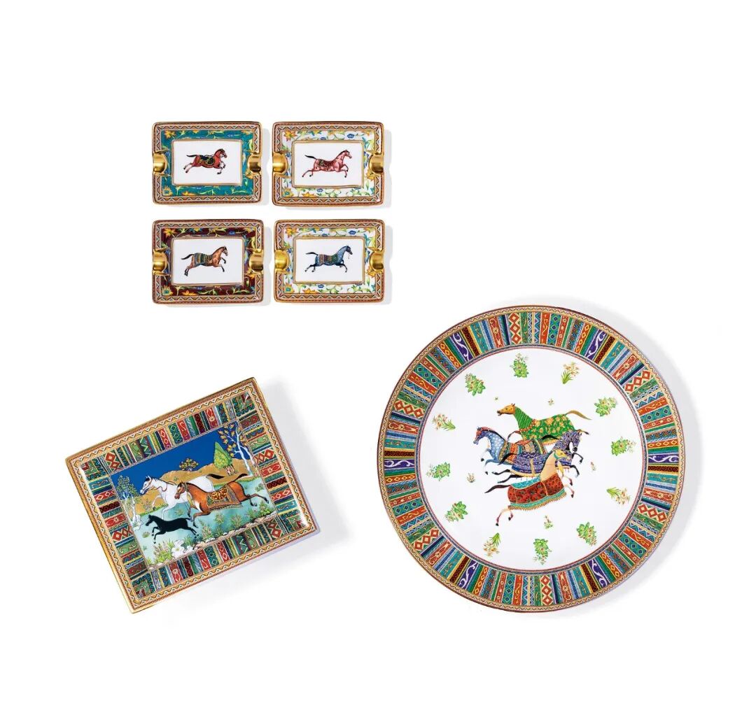 CHEVAL D'ORIENT' 瓷盤及瓷質煙灰缸五件