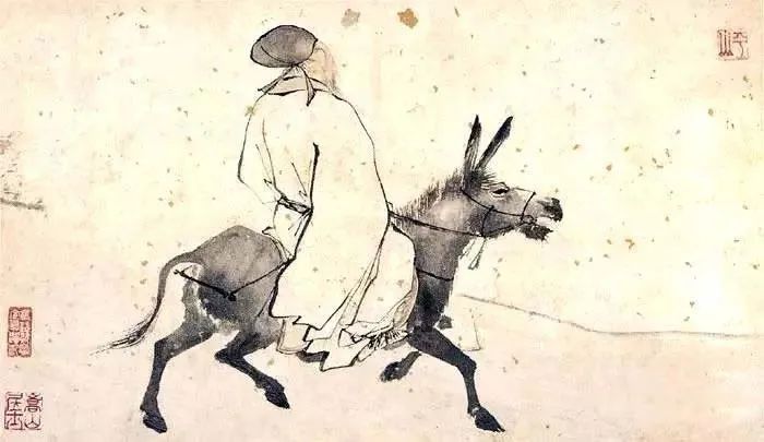 驴几乎成了诗人们的灵感的钥匙,骑驴也成了一种文化。孟浩然骑驴踏雪寻梅,李贺骑驴觅句,孟郊骑驴苦吟,贾岛骑驴赋诗。杜甫更爱骑驴,他自称:“骑驴三十载,旅食京华春”。