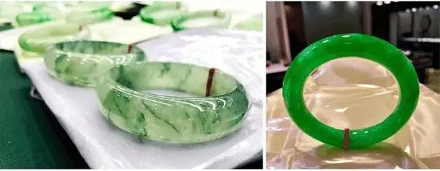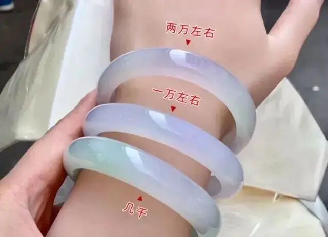 如果这三个都没有颜色,呈白底色,价格减半,若灰底色,暗绿色,价格再减行话看价先看色,无色就看种,无种无色不值钱,下面就是价格两三百的手镯,当然质地算是细腻,有陶瓷鳞片结构很干的更不值钱,十块钱的都有,而其实很多人花两三千买的手镯,也就是这个质地,卖家美其名曰我这个是真的,网上是假的,说实话,这种洗脑的方式十年前还有用,智能时代,大家都不傻,每个人都有自己的渠道。