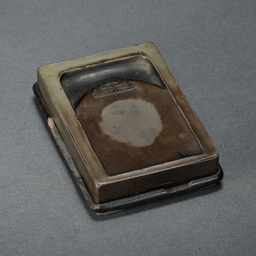 铭文:1.艺苑之精,文房之主,受即墨侯,封与中书。君佐。2.福德长寿之砚。3.端州名石甲天下,一片绿石更难寻。癸酉秋月吉日江南寿石翁补记。钤印:石父(朱)