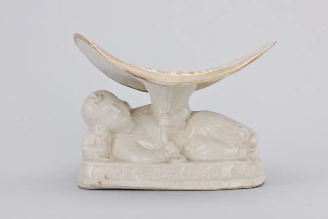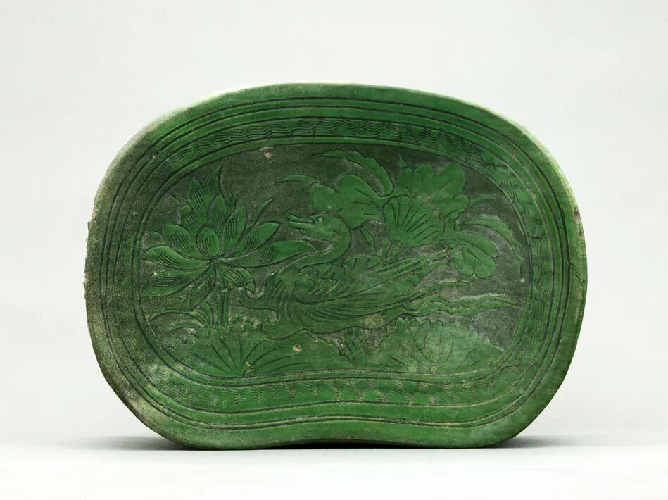 定窑绿釉莲荷游鸭纹枕北宋定州市博物馆藏