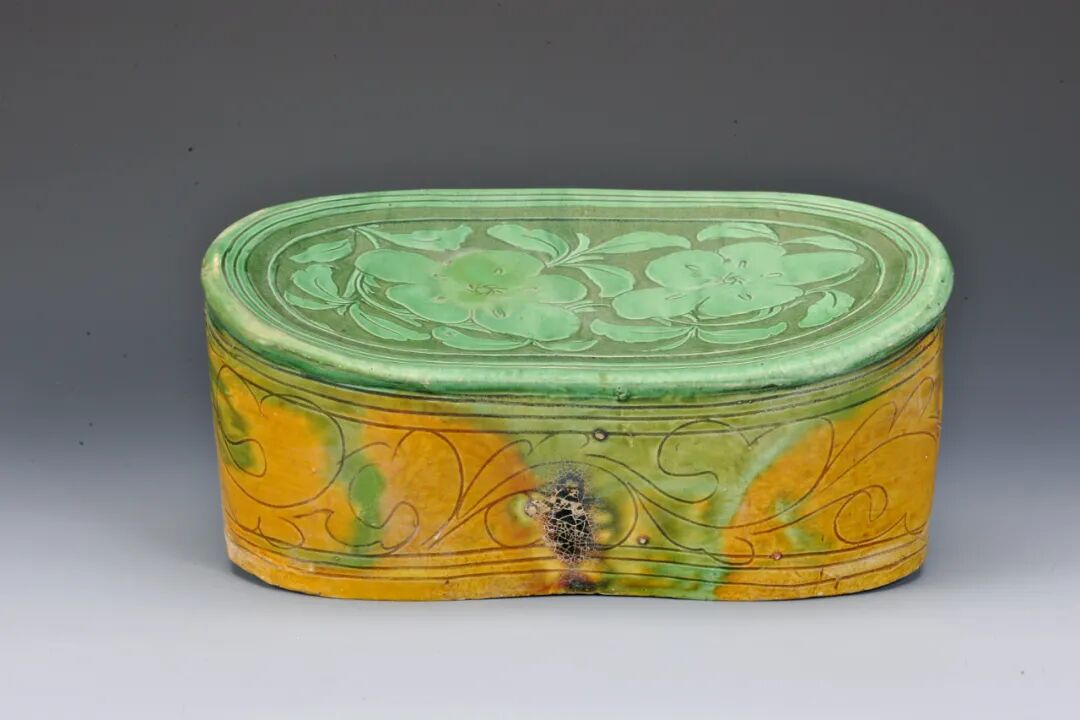 定窑以白瓷广为世人所知,同时兼烧各色釉瓷。定窑花枕因其釉色多彩、花样繁多、传世稀少,充分体现定窑工匠的高超技法和艺术素养,具有独特审美文化价值。