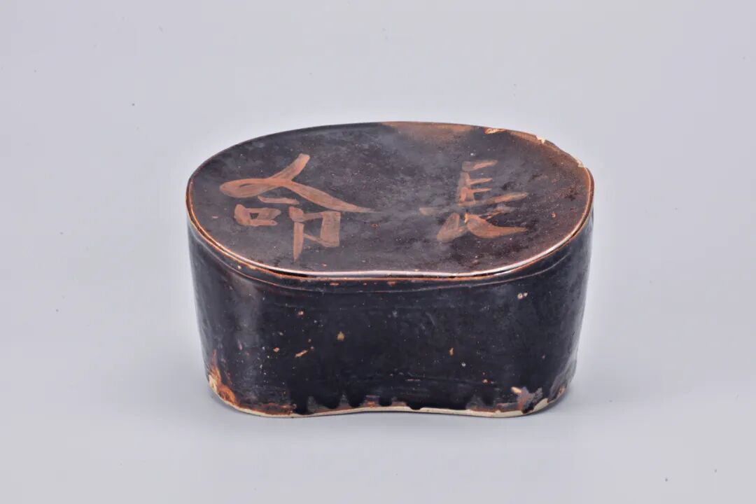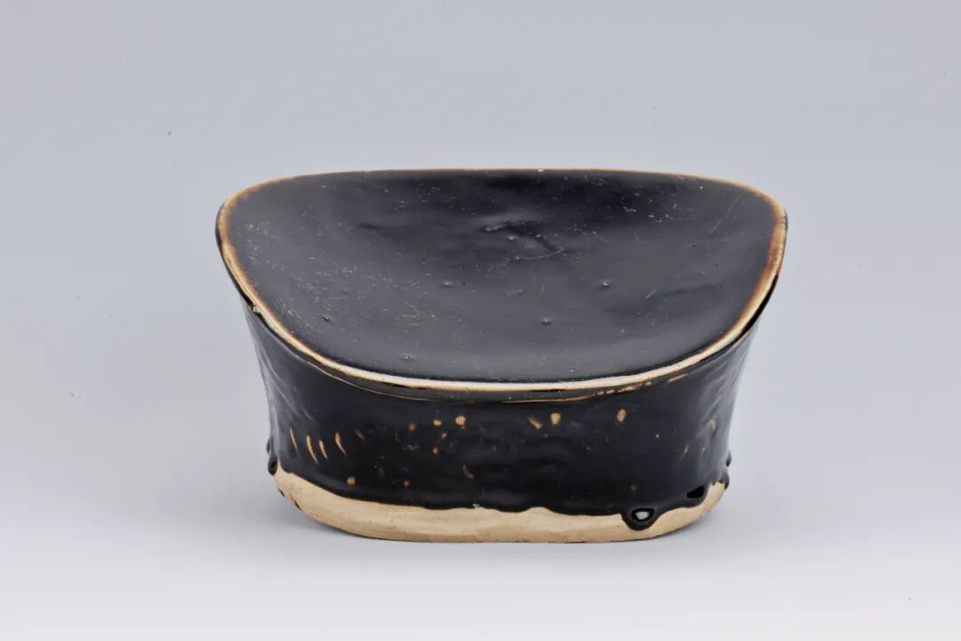 黑釉是定窑烧制的又一品种,窑址标本及传世器物均可见到。黑定胎洁白,釉漆黑发亮,施釉不到底。“黑定”稀少,且器型偏小,因此器型较大的瓷枕就弥足珍贵。