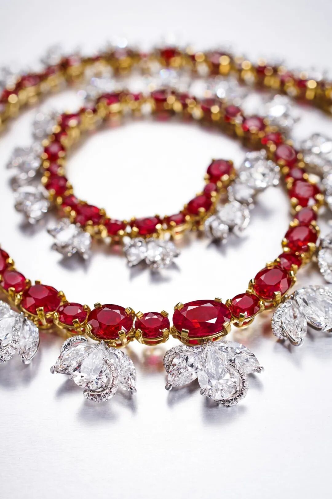 共重57.71克拉緬甸天然「鴿血紅」紅寶石配鑽石「火鳳凰」項鏈,未經加熱