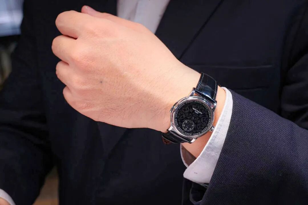 2002年,百達翡麗推出錶款型號5074,錶殼以玫瑰金製成,搭配了烏木黑色錶盤,直徑至42毫米,其機芯功能得到全面升級,採用了尺寸更長更複雜的音簧,能發出天籟般的教堂奏鳴聲。腕錶同時具備了萬年曆功能,官方叫法稱為大教堂奏鳴,坊間簡稱大教堂三問鐘聲。報時聲音乃百達翡麗多款三問腕錶中的翹楚,發出渾厚清脆的聲音。本拍品處於單封狀態,品相極佳,為極為罕見的瑰品。
