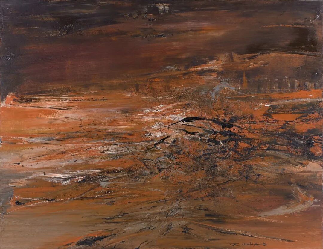 作於1964年的《20.3.64.》闊別30年再現拍場。此作出自藝術家創作生涯中「全速前進的十年」,該時期被認為是趙無極非凡藝術生涯中的巔峰時期,在當前的趙無極前十大世界拍賣紀錄中,有三件作品均出自1964年筆下。《20.3.64.》由純白、墨黑及琥珀三色層迭漸變而形成完美和諧的豐富色調,藝術家以寬闊磅礴的筆觸描繪出畫幅的整體構圖,透過尖細的畫筆於畫面中央停頓、刮擦、轉動,創造出細膩複雜、蘊含東方水墨氣韻的油彩筆觸,充分體現出趙無極在傳統中國書畫技巧上融入西方抽象表達之登峰造極,同時亦昭示其正朝著更為宏偉而壯觀的風格轉型。