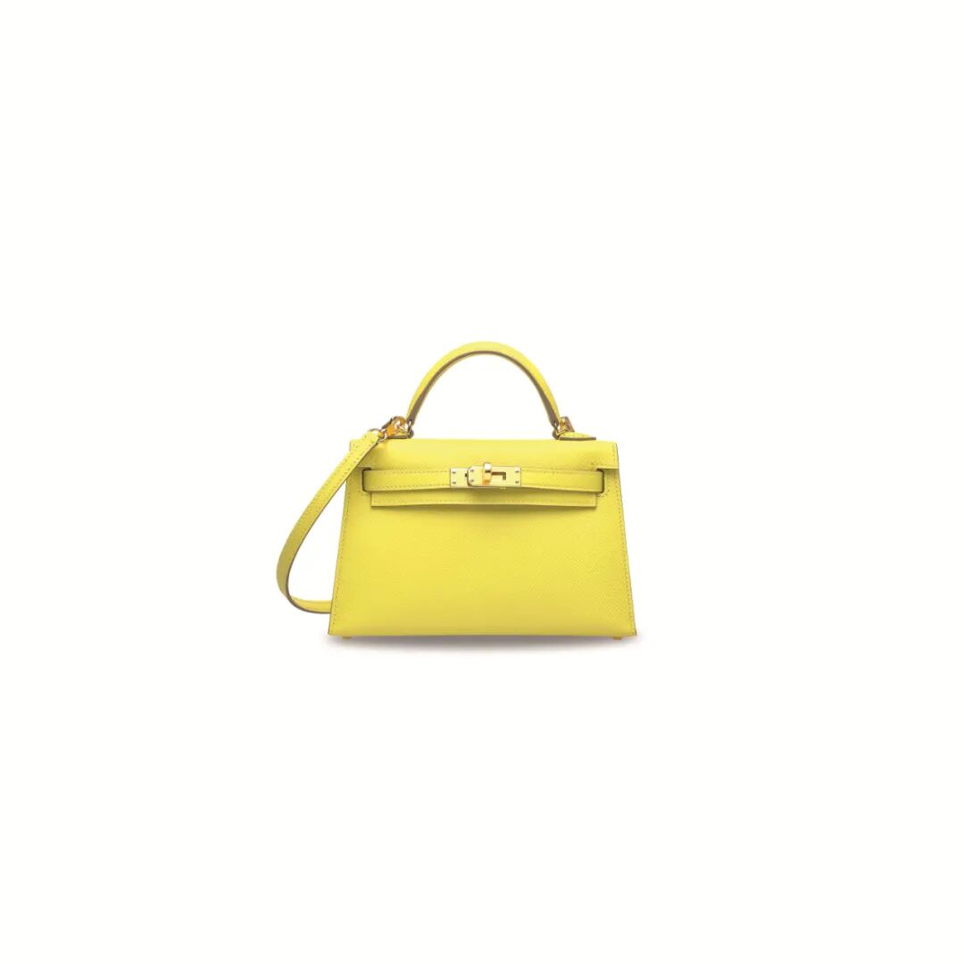 莱姆黄色EPSOM小牛皮20公分迷你凯莉包二代附黄金配件