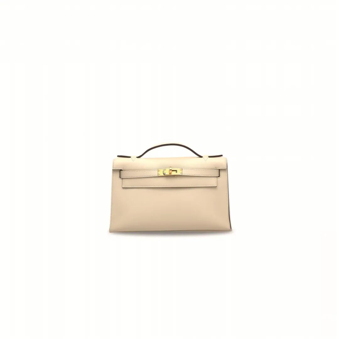 奶油白色SWIFT小牛皮KELLY POCHETTE包附黄金配件