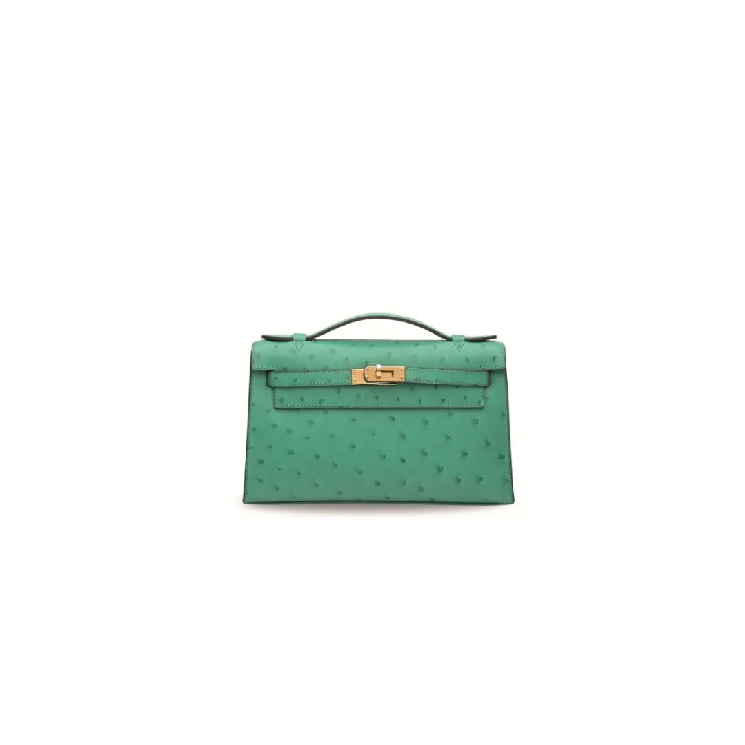 浅绿色鸵鸟皮KELLY POCHETTE包附黄金配件“Kelly Pochette”不仅是出席聚餐以及派对的最佳时尚配件,也可将其放进大尺寸手袋当中作为化妆收纳小包使用。![]()