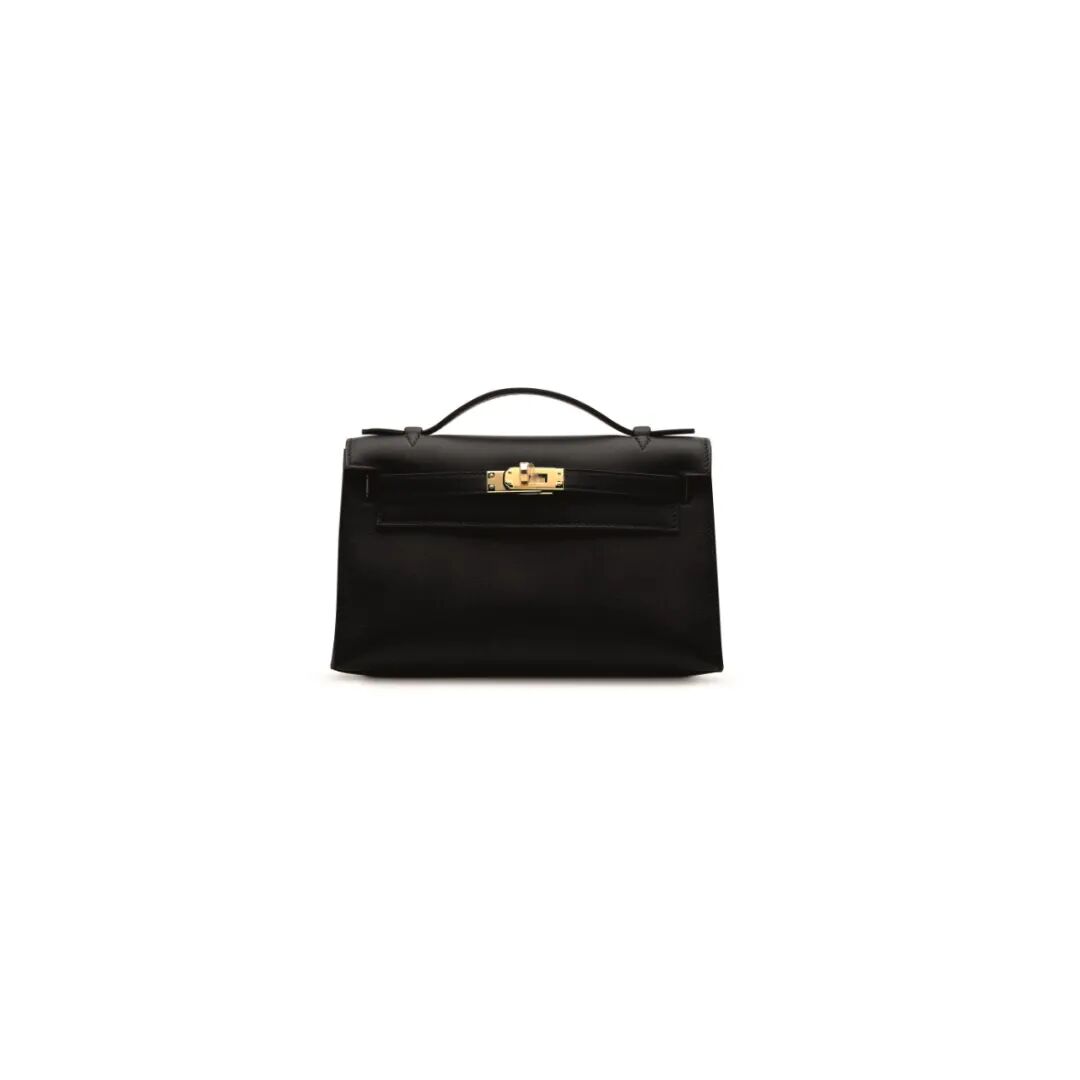 黑色SWIFT小牛皮KELLY POCHETTE包附黃金配件![]()