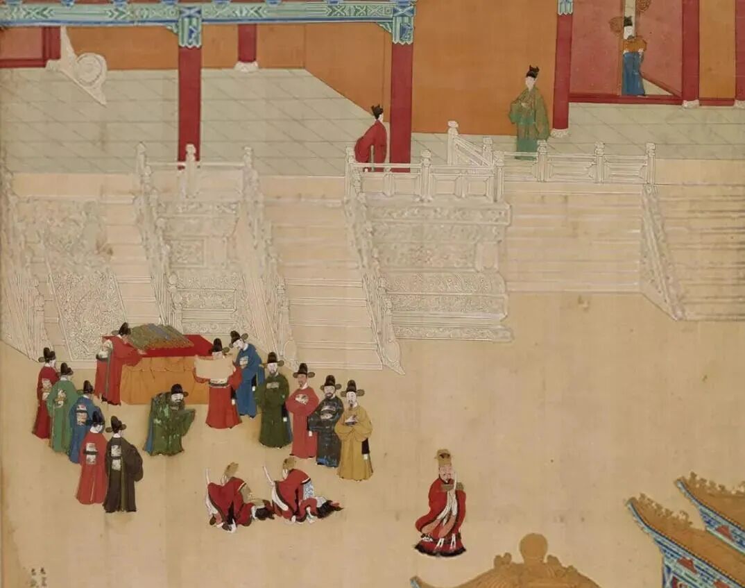景帝口是心非的神态在史官笔下可谓昭然若揭。例二:景帝不准群臣年节朝贺英宗,《明英宗实录》于景泰元年(1450)至七年(1456)每年的十一月十一日(英宗生日),例书“太上皇帝万寿圣节,礼部请令群臣诣延安门行朝贺礼,帝命免行。”例三:朱见济死后,景帝虽然并无其他子嗣,却始终拒绝复立宪宗为皇太子,甚至对上疏奏请复的官员钟同、廖庄、章纶等人严加惩罚,《明英宗实录》载: