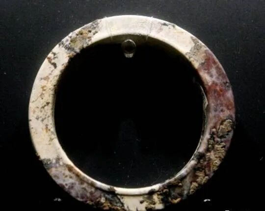 该环玉质温润细密,环体扁平轻薄,制作精细规整,可能为佩玉的组成部分。