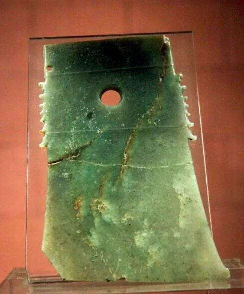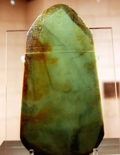 玉戈:戈是与木柄作垂直交角,用以勾杀或啄杀敌人的兵器。玉戈则是从实际功用中脱立出来,演变为礼制活动中的仪仗用器,是使用者权力与身份的象征物。