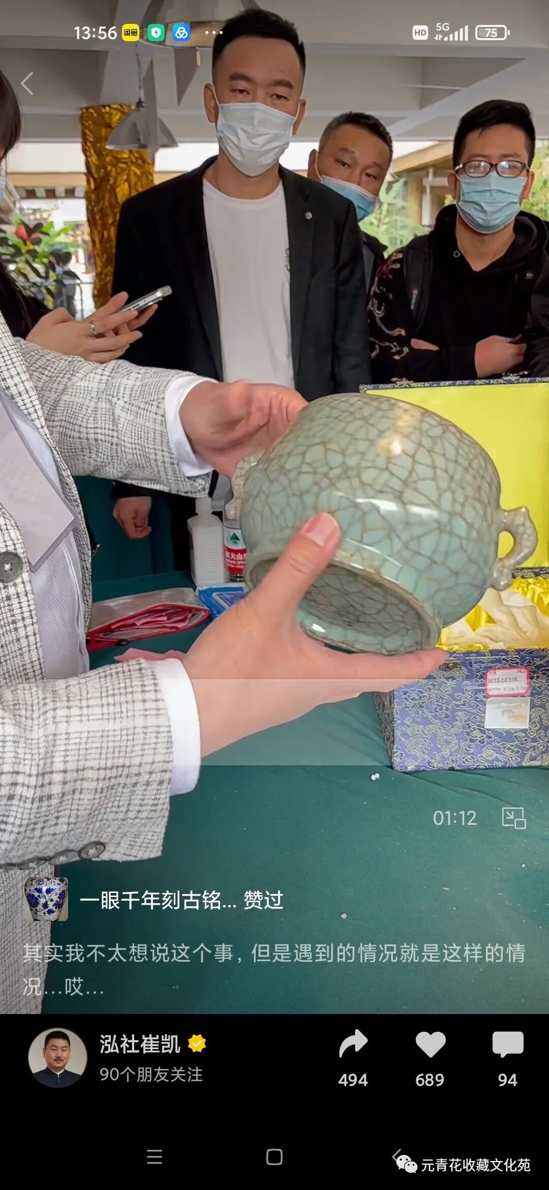 在这个视频中,就是这个藏家拿着藏品让崔某专家鉴定的: