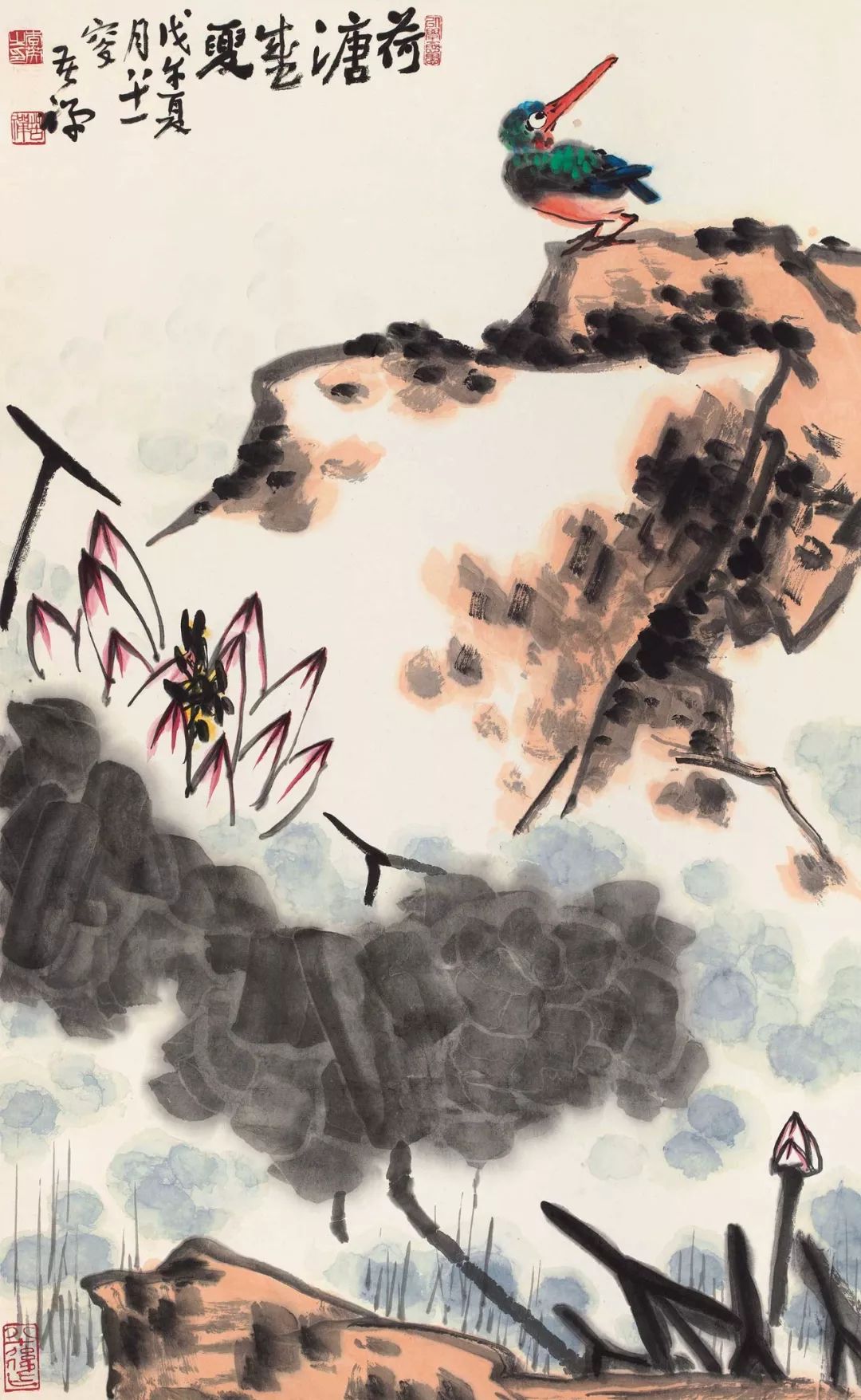 4.忘情。物我两忘。经过终生的锤炼,自然和自我融为一体,外师造化中得心源,心身一致,达于化境。所画作品往往偶然而不可预见,超过作者的想象、感觉和经验,每当作画时才思奔涌,笔墨若神,不知道是非,连自己都无法想象,即为忘情。