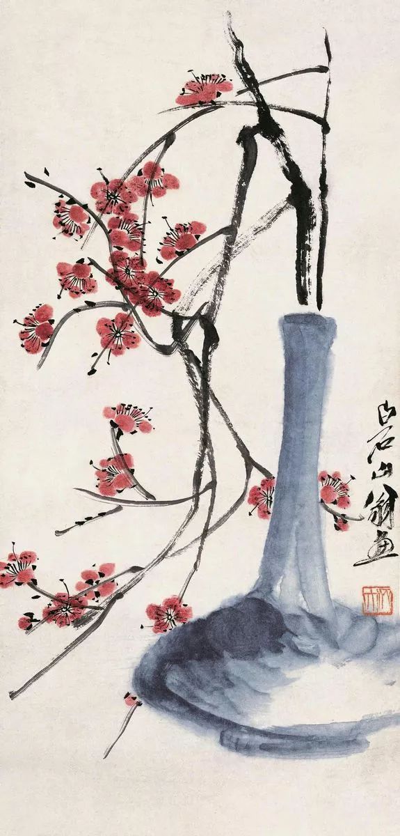 从实践上讲“大写意”,我们的象形文字,就是最早的绘画。发展成后来的岩画、彩陶、玉器、青铜器,都是古代的美术,及至进入到平面绘画。从出土的墓室壁画上可以看出,在魏晋时代,中国人就追求“大写意”。顾恺之的《洛神赋图》卷,人大于山,水不容泛,完全是一种浪漫主义。唐朝的绘画,以肥为美,其实就是写大唐之意。宋元的绘画,技法很发达,故离现实相对远,更是一种写意。清代的石涛、八大山人,抒发的是一种情绪,到了齐白石,红花墨叶,都是“大写意”。