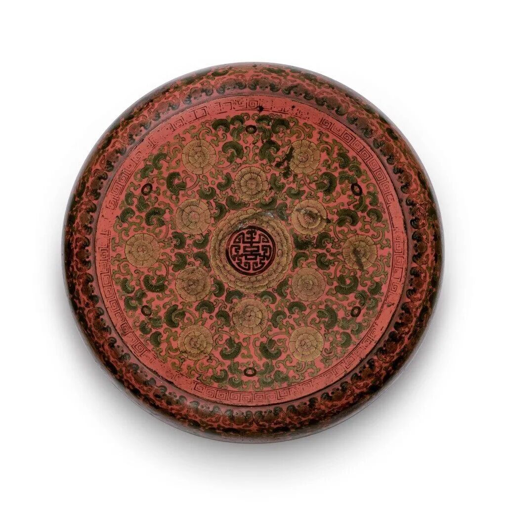 Lot 86 清康熙 朱漆彩绘花卉纹“寿”字圆盖盒