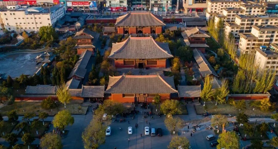 ▲航拍视角的华严寺/来源微博:影像视觉杨