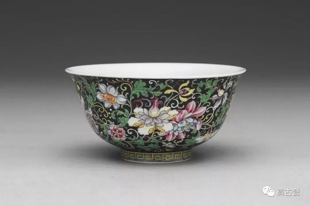 ▲清乾隆 磁胎画珐琅彩西番花黑地茶钟