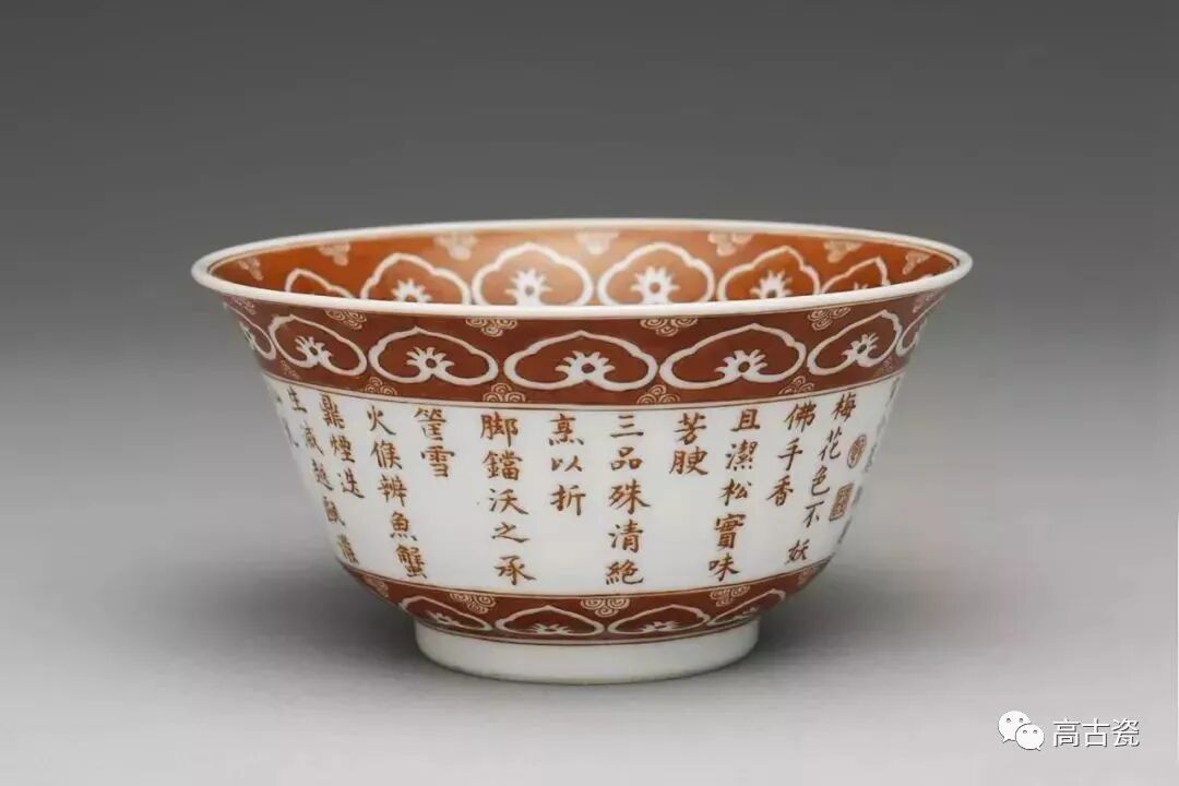 ▲清乾隆 青花、描红三清诗茶碗