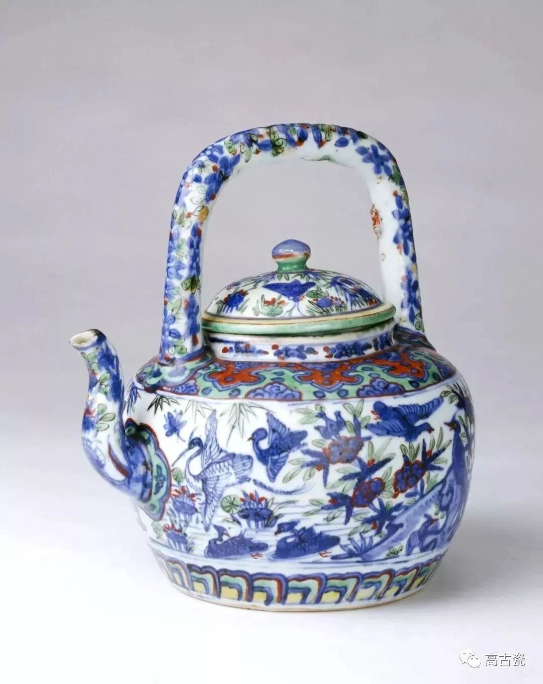 ▲明万历 斗彩花鸟纹提梁壶