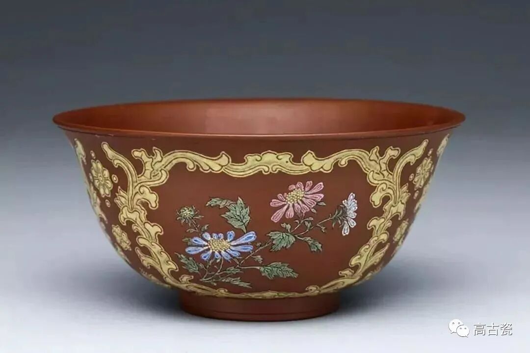 ▲清康熙 宜兴胎画珐琅花卉纹茶碗