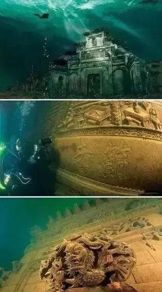 浙江古淳安城和古遂安城,1959年因兴建新安江水库而沉入千岛湖湖底。