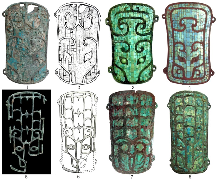 (2)李学勤:《论二里头文化的饕餮纹铜饰》,《中国文物报》1991年10月20日;杨美莉:《中国二里头文化的嵌绿松石铜牌》,(日)《Miho Museum研究纪要》3号,2002年;王青:《镶嵌铜牌饰的初步研究》,《文物》2004年5期;王青:《镶嵌铜牌饰的寓意诸问题再研究》,《东方考古》第9集,2012年。