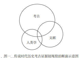 在这条证据链绳股里,考古、文献、人类学证据不仅是三重各自层面和角度提供的证据片段,而是以考古证据链为主股,配合文献证据链股,辅以人类学证据链股,拧成一条有机联系的三股证据链绳,(图一)这样探索和重建出来的传说时代历史即史前史或原史史,便是坚实的、经得起时间和历史考验的“史实素地”。
