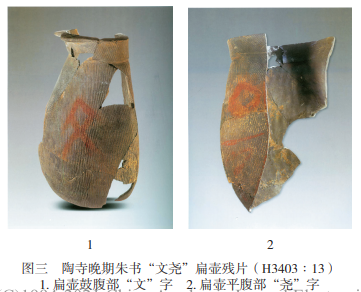 陶寺朱书文尧系地下出土文献,但是笔者主要依据陶寺遗址出土的考古资料特性、背景关系(contexts)来解读,提出“尧”字本义是在黄土塬上用夯土板块(也可能是土坯)建造的大城。虽然文尧扁壶均属于陶寺晚期原宫城内垃圾坑里出土遗物,但是,这些文字皆用朱砂或赤铁矿书写而成,写在汲水器扁壶的残片上,很显然是以压胜巫术的形式,借用先王的威名,镇压某种鬼祟或祸患。结合陶寺晚期遗址范围内的几次大洪水遗存和扁壶汲水器功能,笔者推测应当是陶寺晚期人利用先王“文尧”的威名镇压水患法术用品。做法的场所就是“文尧”的“故宫”即陶寺宫城原址内,使用过后便将朱书扁壶残片扔进垃圾坑。因此,虽然陶寺晚期,陶寺遗址已不作为尧都存在,但是尧王族的后人,仍然居住在陶寺遗址,还曾借用先王文尧的威名镇压水患。做法时,巫师的说辞很可能就是《尚书·尧典》开篇的那句名言:“曰若稽古帝尧,曰放勳,欽、明、文、思、安安,允恭克讓,光被四表,格於上下。”“文尧”二字用红色颜料书写,“光被四表,格於上下”已不会用文字表达,便用句意式符号在扁壶的破片边缘用红彩勾边表达。从这个角度说,陶寺晚期的朱书陶文“文尧”,可视为陶寺尧都的文字自证。