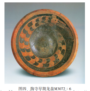 《竹书纪年》有关赤龙与尧诞的传说,同陶寺早期王族墓地5座王墓出土龙盘的登龙形象不谋而合。而这5件龙盘都是王墓独有的冥器,专为先王灵魂升天,或可以说陶寺龙盘就是《竹书纪年》赤龙尧诞传说的图解。(图四)